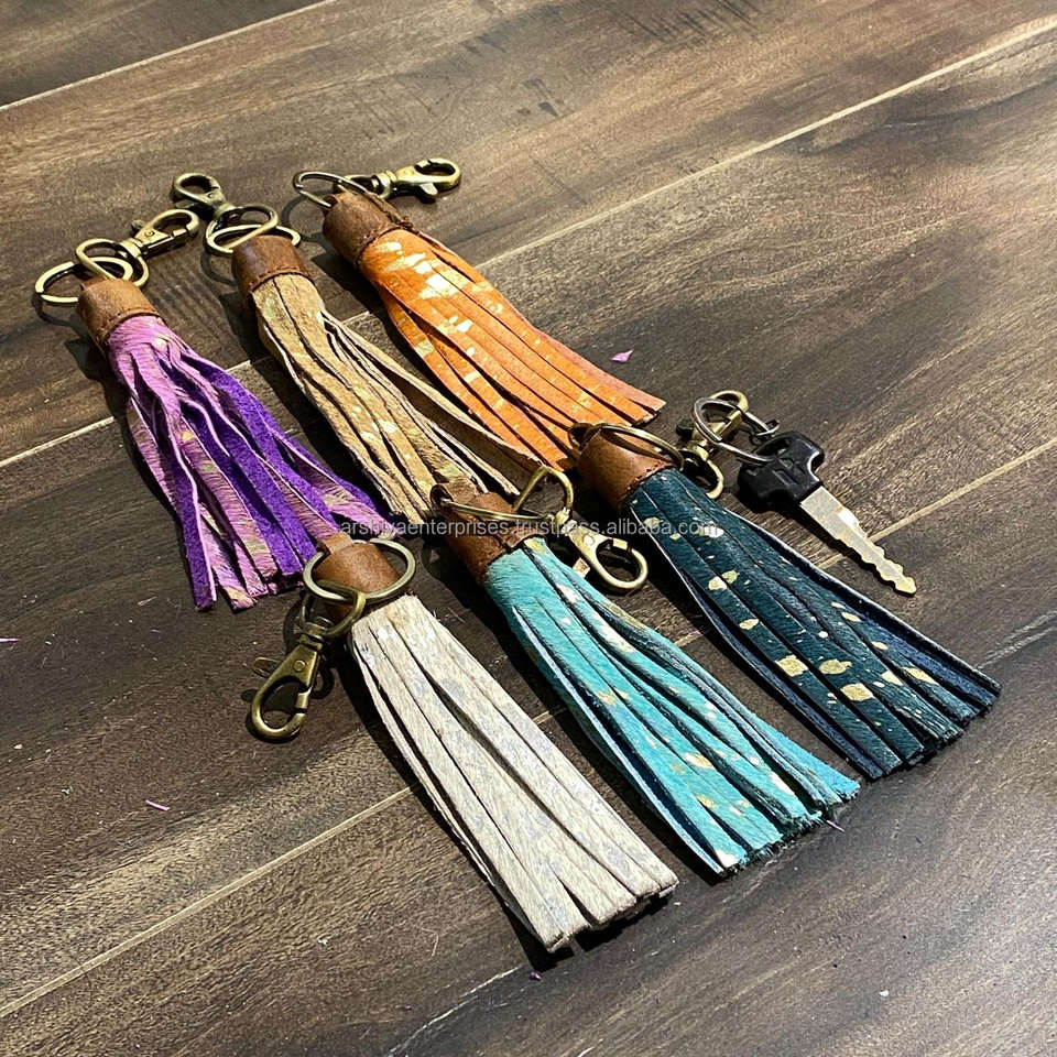 New Real Handmade Metallic Hair on Hide Fur Leather Cute Charming Rainbow Color Tassel Keyring Western Style Multi Modern Keyfob