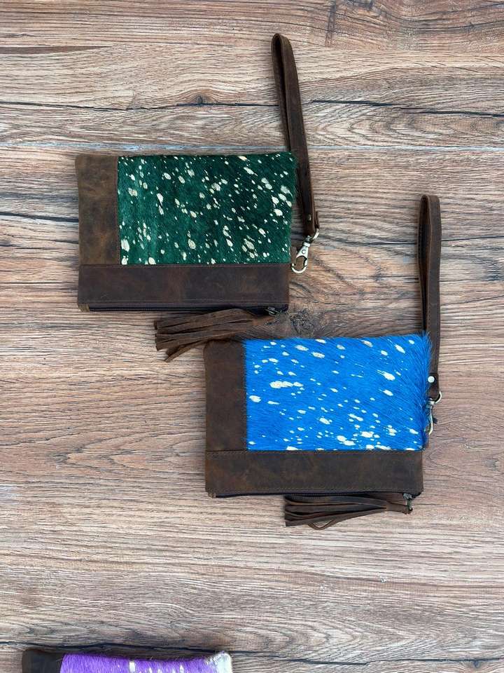 Metallic Fur Leather Small Pouch Wristlet Wallet