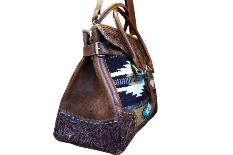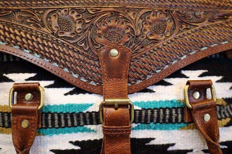 New Real Handmade Saddle Blanket Tooled Cowhide Leather Duffel Western Unisex Cowhide Leather Bohemian Fringe Large Travel Bags