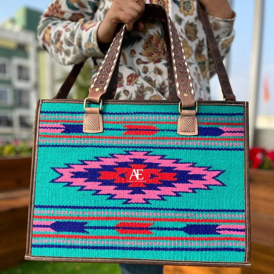 Type:New Handmade Tooled Aztec Leather Tote Bags