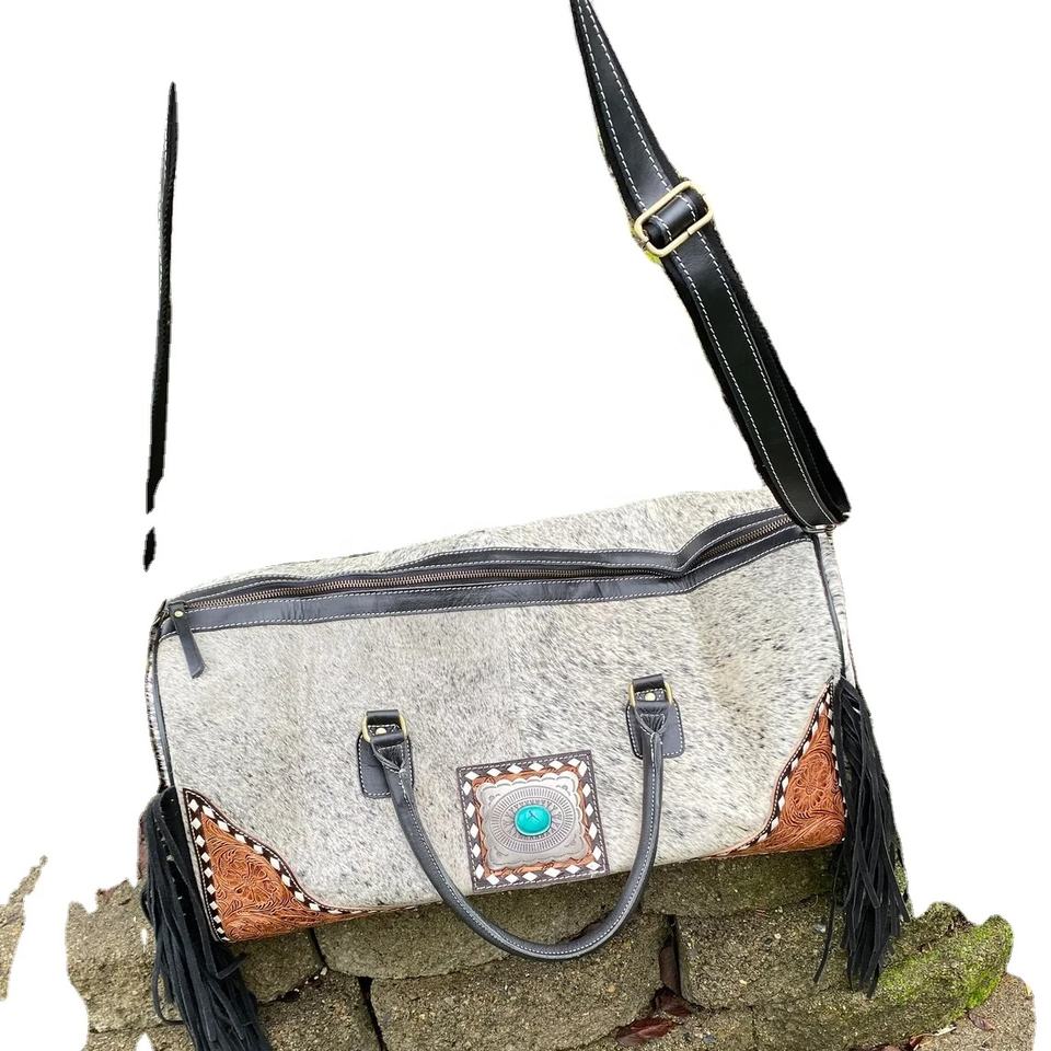 กระเป๋าเดินทางใบใหญ่สำหรับเดินทาง, ใหม่กระเป๋าหนังวัวขนเฟอร์ทำด้วยมือสไตล์วินเทจ