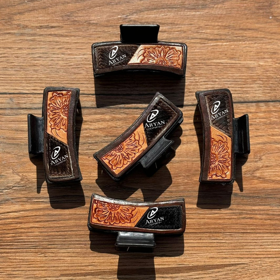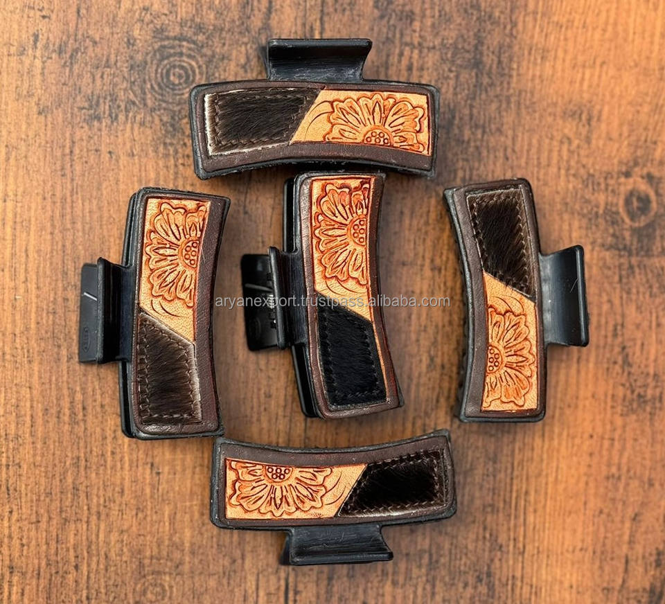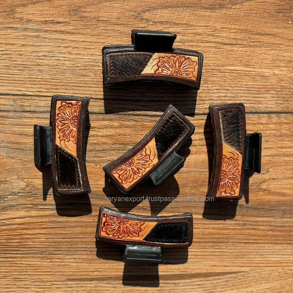 ใหม่จริงสไตล์ตะวันตกผมมือTooledหนังผมClawคลิปส่วนบุคคลของแท้หนังClawอุปกรณ์เสริมผมสําหรับผู้หญิง