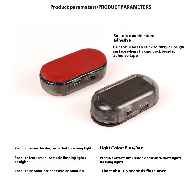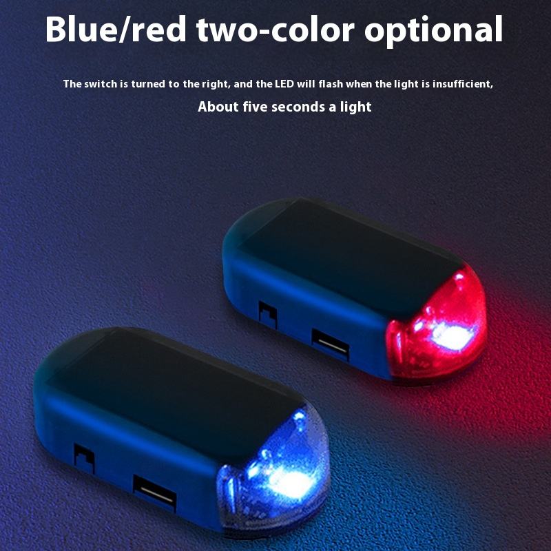 ไฟแฟลช LED พลังงานแสงอาทิตย์สีแดง/น้ำเงิน, ไฟเตือนรถกันขโมยแฟลชไฟตกแต่งอุปกรณ์เสริมแบบไม่เดินสายสำหรับแต่งรถ