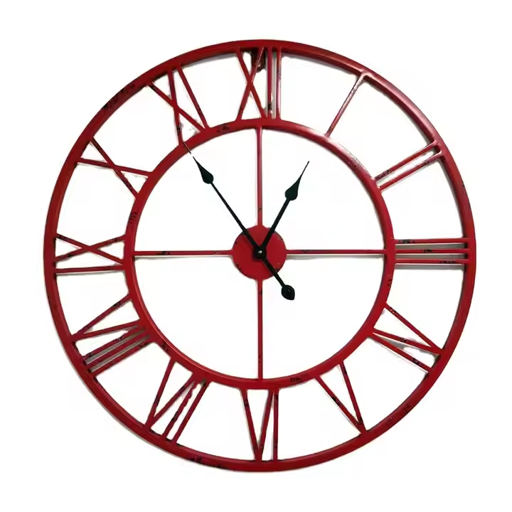 นาฬิกาควอตซ์ติดผนังโลหะเคลือบสีแดงคุณภาพสูงทนทานเข็มที่สง่างามสำหรับตกแต่งบ้านห้องรับแขกโดยอุตสาหกรรม azora