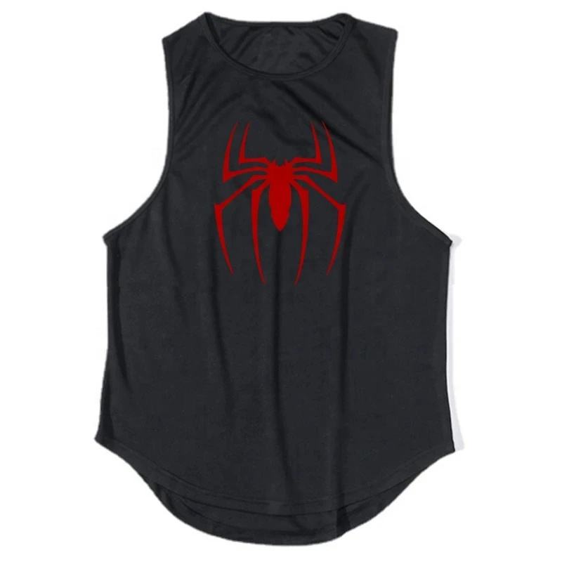 เสื้อกล้ามพิมพ์ลายแมงมุมสีแดงสำหรับฤดูร้อนเสื้อกล้ามใส่ไปยิมเสื้อกล้ามสำหรับผู้ชายเสื้อยืดออกกำลังกายแขนกุดสำหรับฟิตเนสฟิตเนส