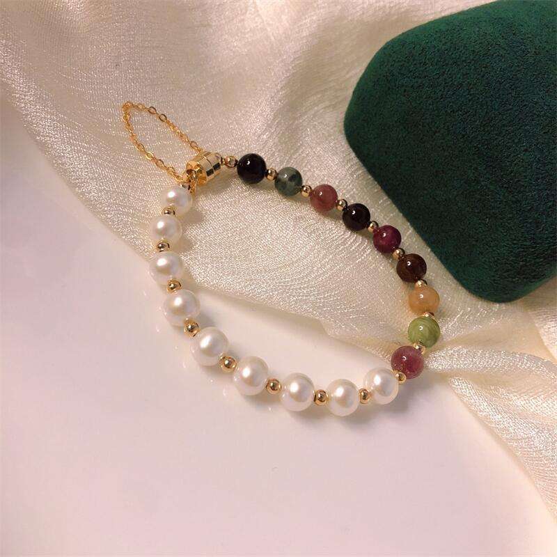 สร้อยข้อมือแม่เหล็กกันหลุดรุ่นใหม่ Wenchi ประดับด้วยทัวร์มาลีนสีรุ้งธรรมชาติและไข่มุกน้ำจืดรูปทรงกลม เสริมโชคลาภ