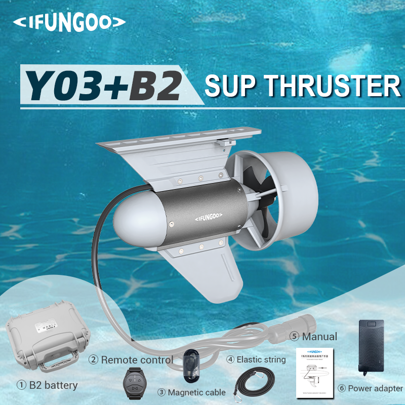 กระดานยืนพาย IFungoo Y03 รุ่นใหม่ โครงสร้างอะลูมิเนียมและผ้าไนลอน น้ำหนัก 18.4 ปอนด์ พร้อมใบพัด + แบตเตอรี่ B2 สำหรับใช้งานในทะเล