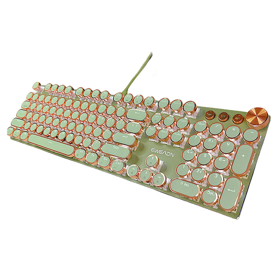 คีย์แคปสไตล์เรโทรพังก์แบบใหม่ ไฟ LED สีขาว แบ็คไลท์ คีย์บอร์ดเกมมิ่งแบบมีสาย USB Type-C แบตเตอรี่ในตัว 104 ปุ่ม Outemu/Gateron