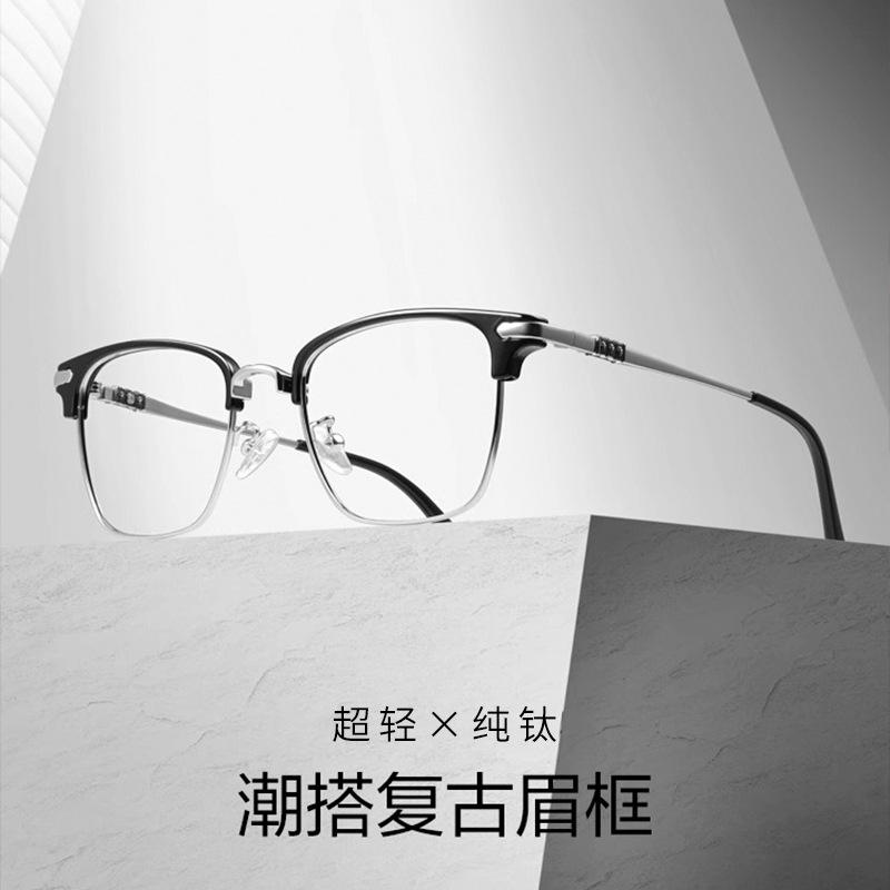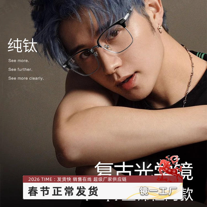 กรอบแว่นตาไทเทเนียมแท้สไตล์เรโทรใหม่ รุ่น 31814 ทรงสี่เหลี่ยมเต็มกรอบ น้ำหนักเบา สำหรับทุกเพศ ผลิตที่ตานหยาง