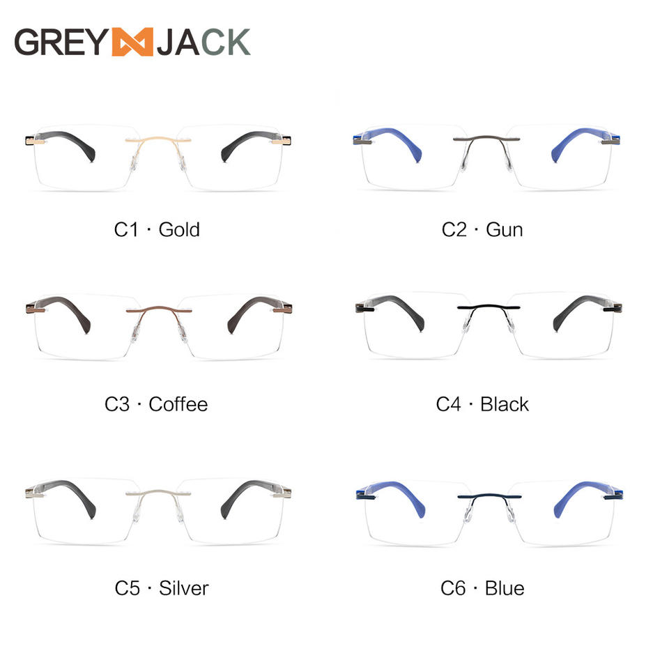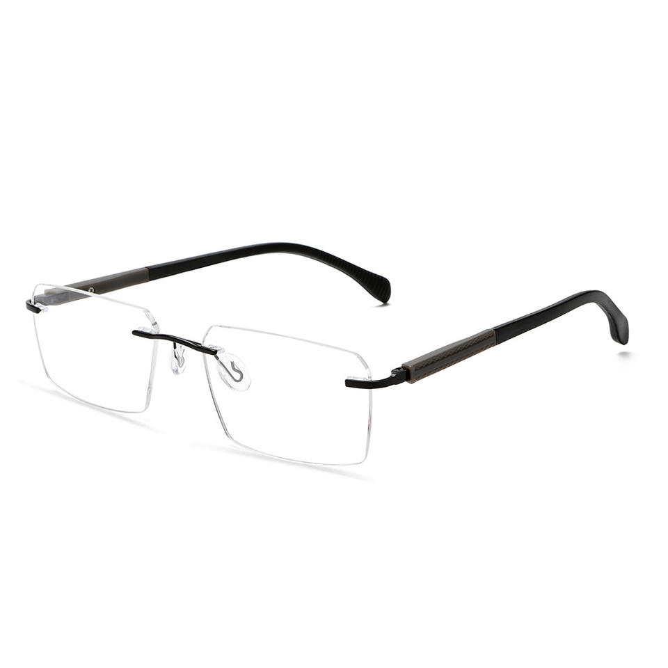 แว่นตาโลหะไร้กรอบสำหรับผู้ชาย เลนส์อะคริลิกแบบไร้กรอบ บานพับสปริง รุ่น 2041 ผลิตที่ไถโจว