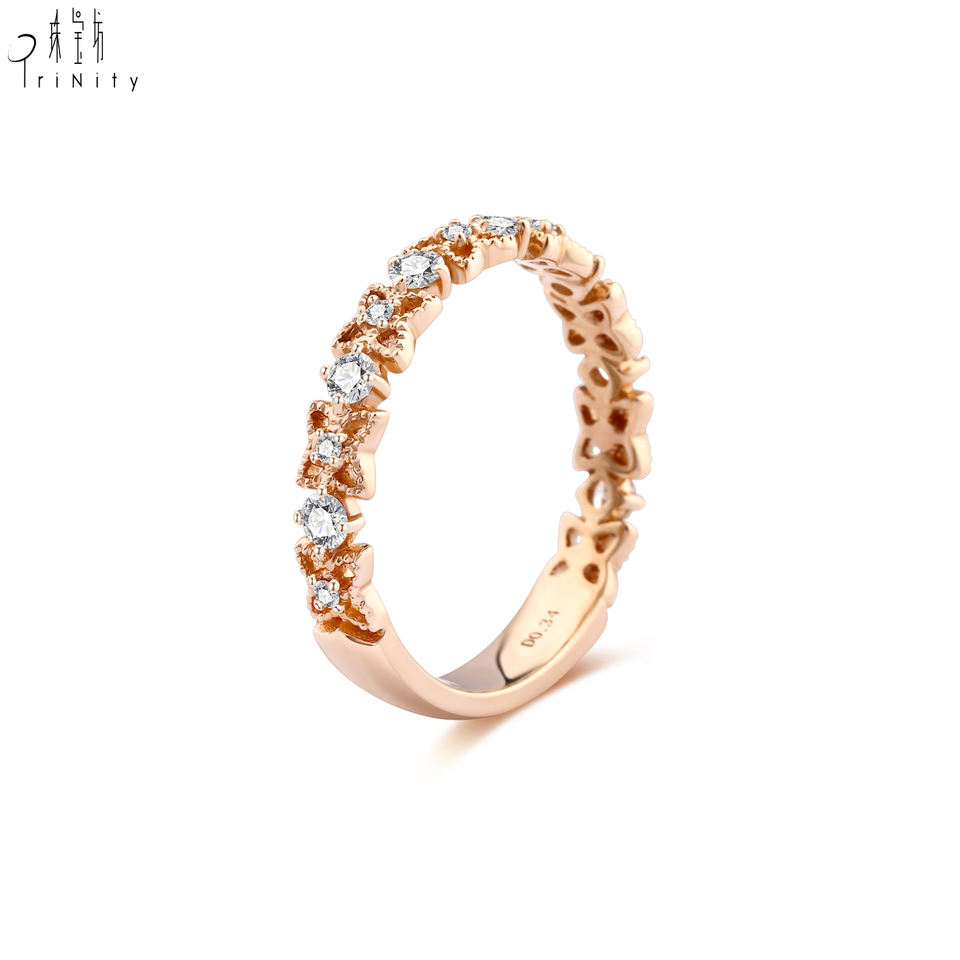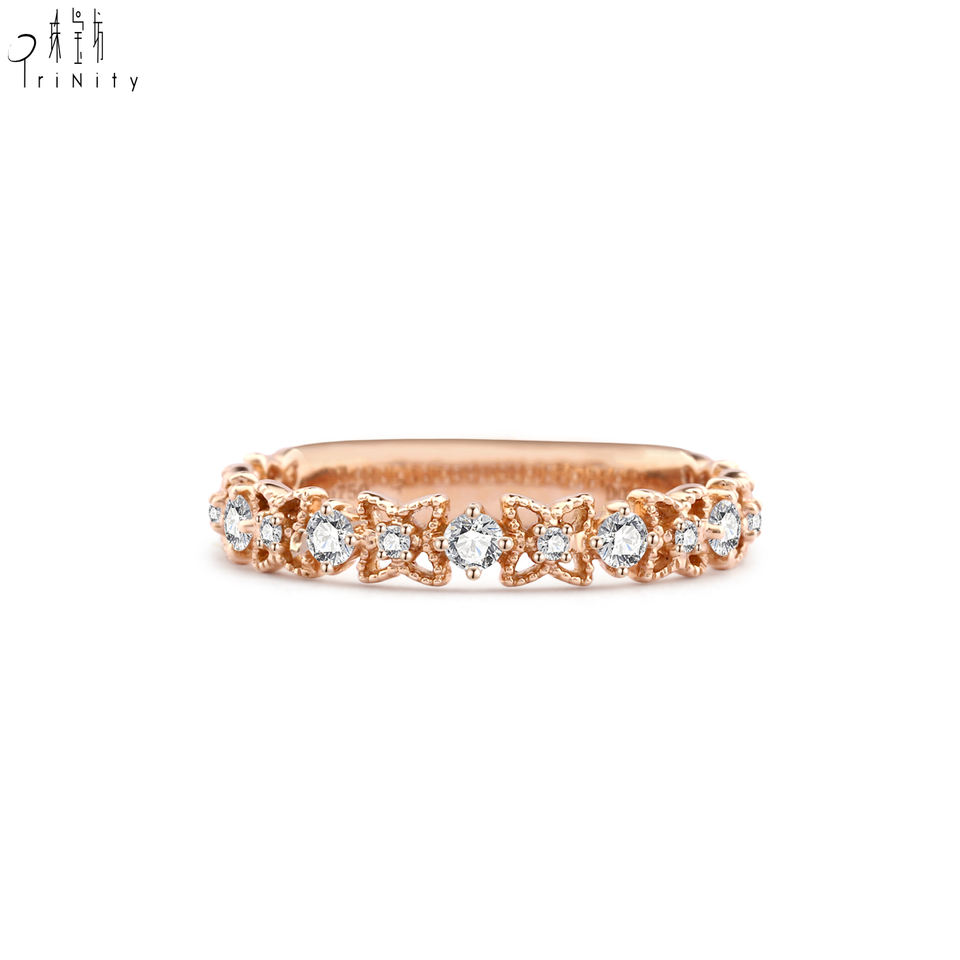 แหวนดีไซน์ผีเสื้อแบบโรแมนติกใหม่ แหวนทองคำแท้ 18K โรสโกลด์ ประดับเพชรแท้ครึ่งวง สำหรับสาวๆ ใส่ไปงานปาร์ตี้