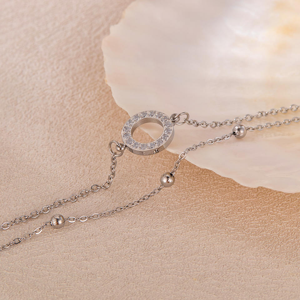 สร้อยคอหินโมราชุบสีโรสโกลด์ใหม่สร้อยคอหมั้นแฟชั่นสไตล์เกาหลีสายโซ่สเตนเลสสองชั้นซีรีส์ป่าใช้ได้ทั้งชายและหญิง