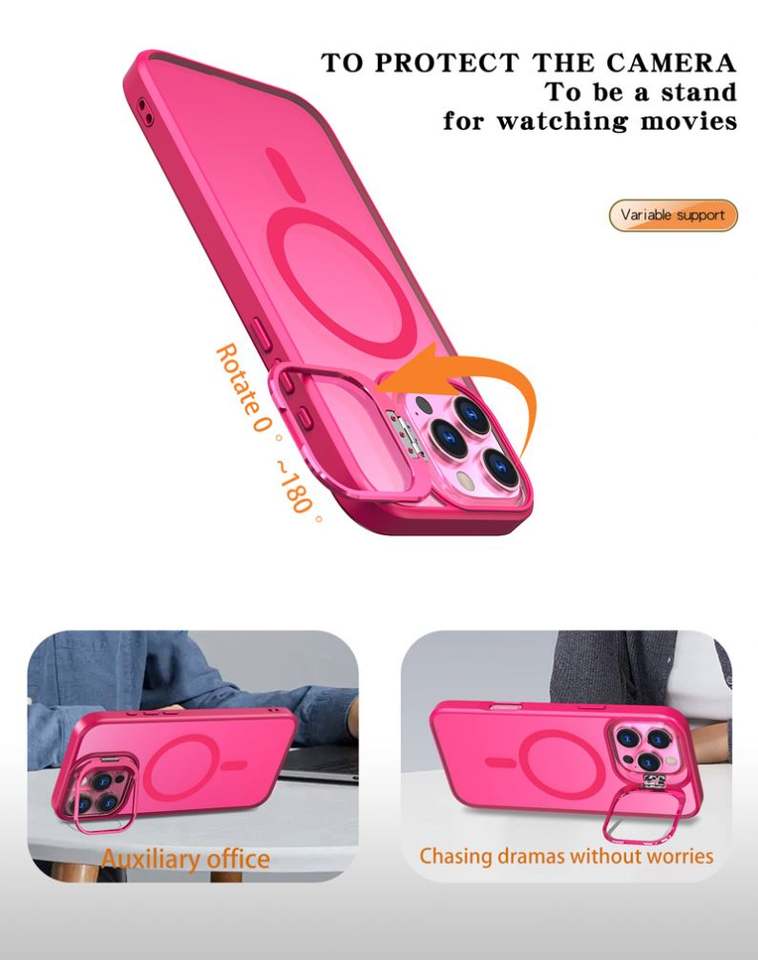 เคสโทรศัพท์กันกระแทกแบบใสสีแดงกุหลาบใหม่ พร้อมที่วางกล้องและขาตั้ง สำหรับ iPhone13 14 15 16 Pro Max