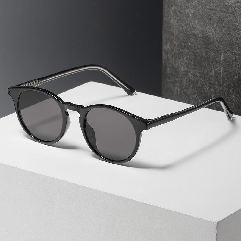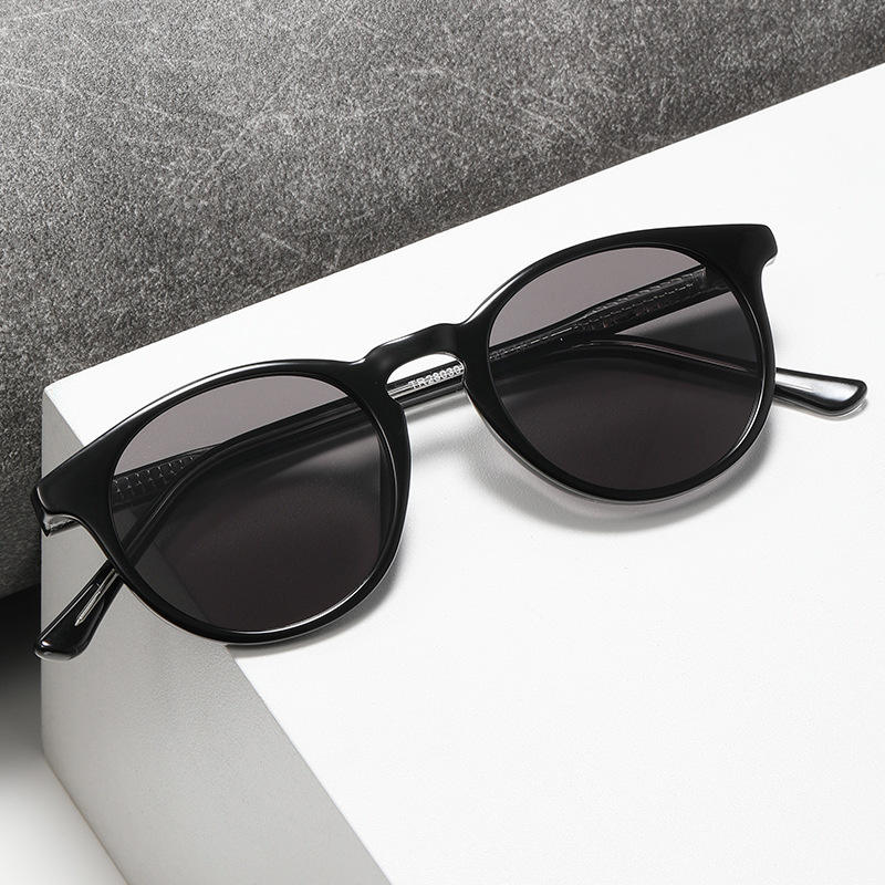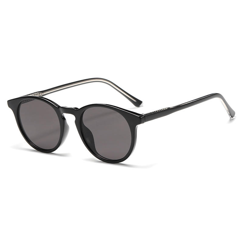 แว่นกันแดดทรงกลมใหม่กรอบโลหะสีดำ UV400 แว่นกันแดดสำหรับทุกเพศคลาส 2 เลนส์พีซี WM TR28030