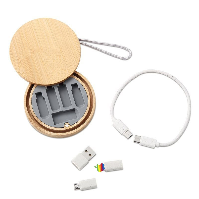 New Round Wheat Straw Eco-friendly Bamboo Fast Charge Data Cable 60w Charging Cable Adapter Storage Box Gift