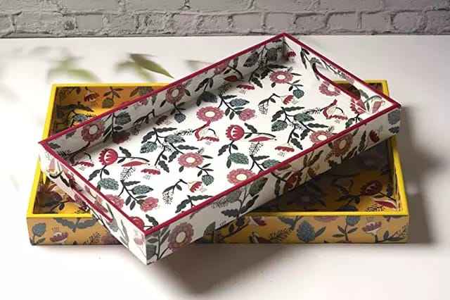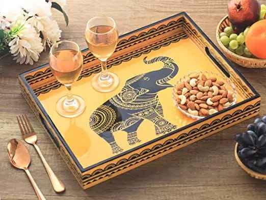 แผ่น MDF พิมพ์ลายแบบราชวงศ์ใหม่ถาดเสิร์ฟทรงสี่เหลี่ยมผืนผ้าดีไซน์ทันสมัยเป็นมิตรต่อสิ่งแวดล้อมใช้ในงานปาร์ตี้ล้างจาน