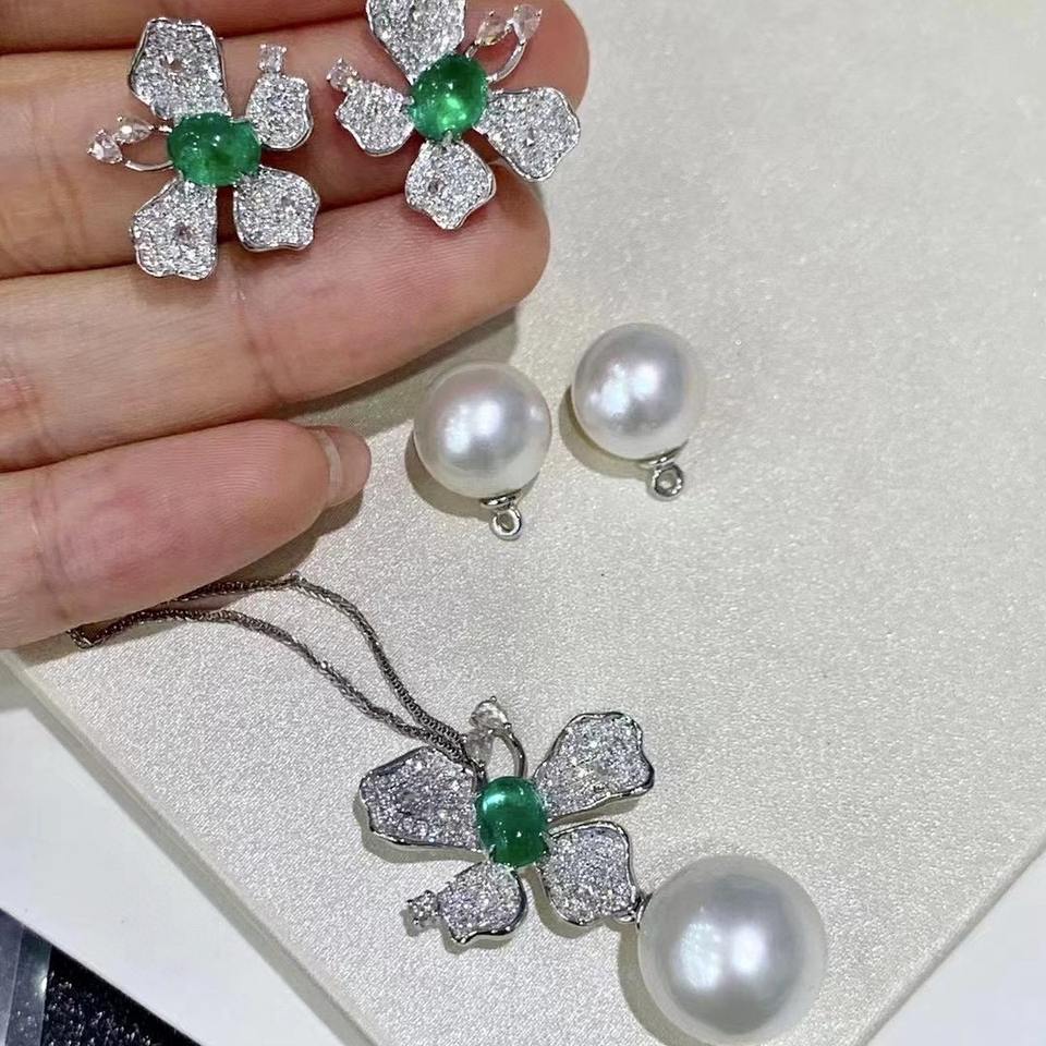 ต่างหูเงินแท้ S925 ประดับหยกเขียว 9-10 มม. และไข่มุกน้ำจืด รูปใบโคลเวอร์สี่แฉก พร้อมกล่องของขวัญ หินธรรมชาติ