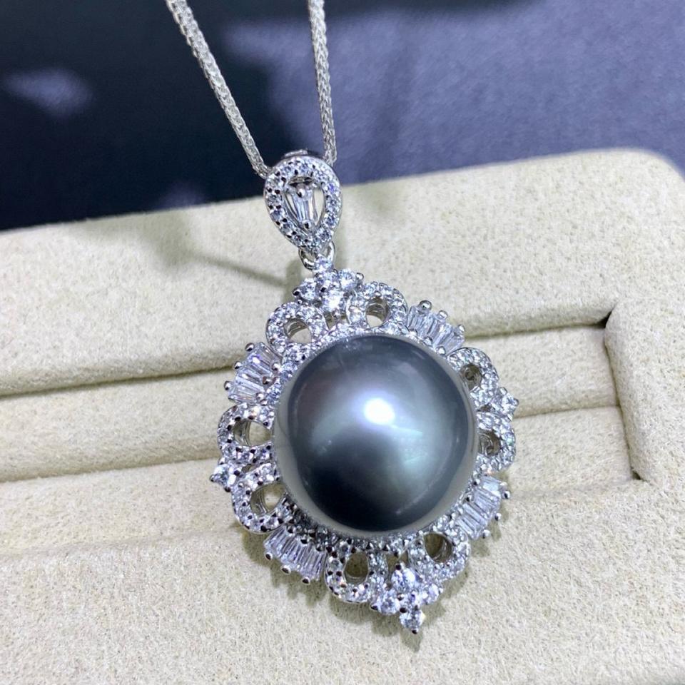 แหวนเงินแท้ S925 พร้อมจี้มุกธรรมชาติ 12-13 มม. ทรงกลมไร้ตำหนิ บนสร้อยเงิน ของขวัญเครื่องประดับสำหรับผู้หญิง