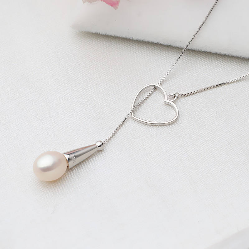 สร้อยคอจี้เงินแท้ S925 รูปหัวใจแบบไม่มีกระดุม สำหรับผู้หญิง เหมาะสำหรับทำสร้อยไข่มุก DIY พร้อมสายไข่มุก 1 เส้น