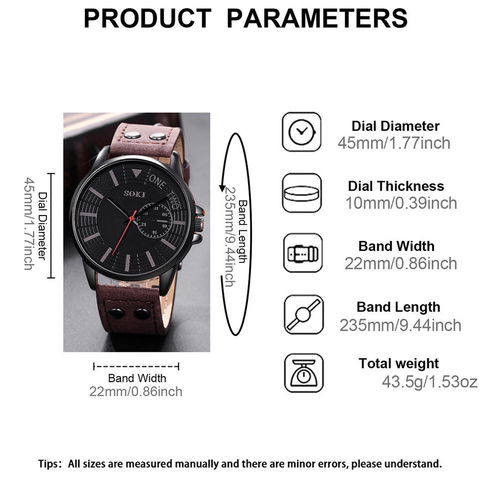 ใหม่นาฬิกาแฟชั่นผู้ชาย soki นาฬิกาควอตซ์ปฏิทินธุรกิจสันทนาการ