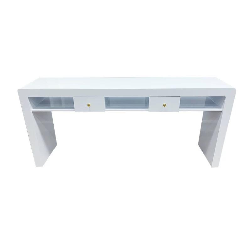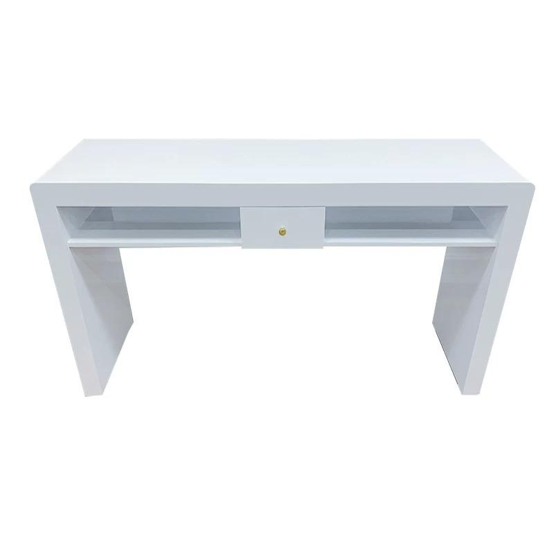 New Salon Manicure Equipment White Modern Manicure Table Tempered Glass Manicure Table and Chair Set Nail Desk Table