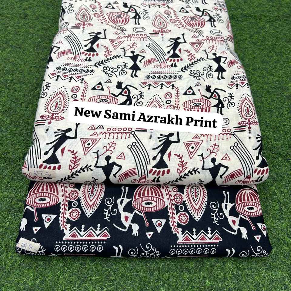 ผ้าฝ้ายพิมพ์ลายซามิ อาซราค แบบดั้งเดิมของอินเดีย ลายพิมพ์ด้วยมือ ดีไซน์แบบชาติพันธุ์ เนื้อผ้านุ่ม ระบายอากาศได้ดี เหมาะสำหรับชุดคุर्ติ