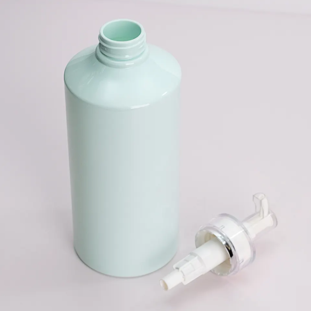 ขวดพลาสติกทรงกระบอกสะพายไหล่ PET บรรจุภัณฑ์เครื่องสำอางขวดเปล่าโลชั่นครีมนวดผมออกแบบได้ตามต้องการ