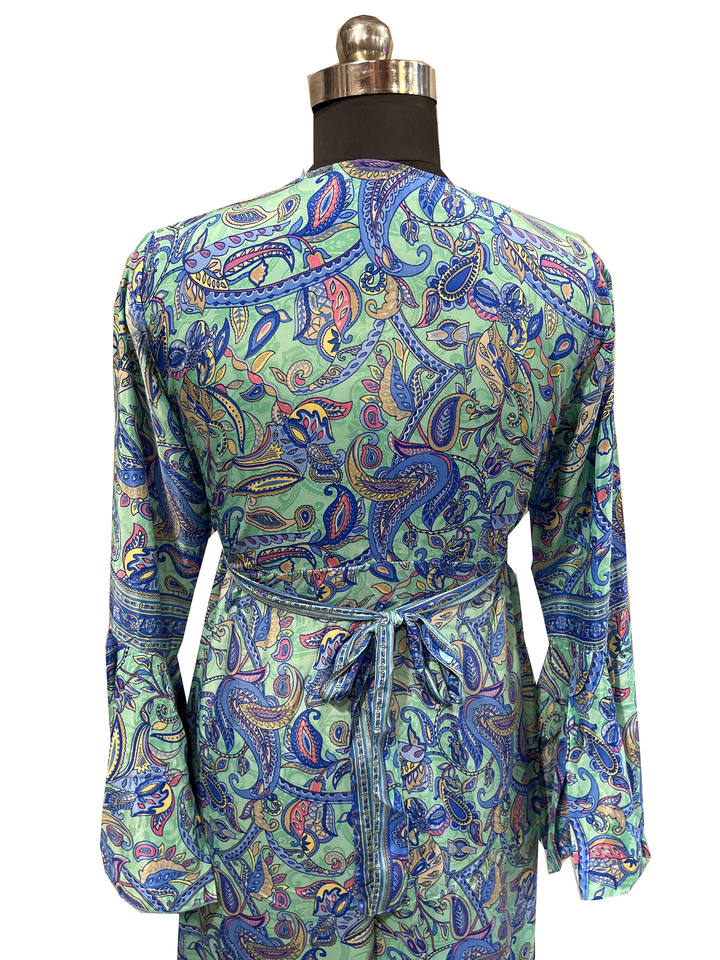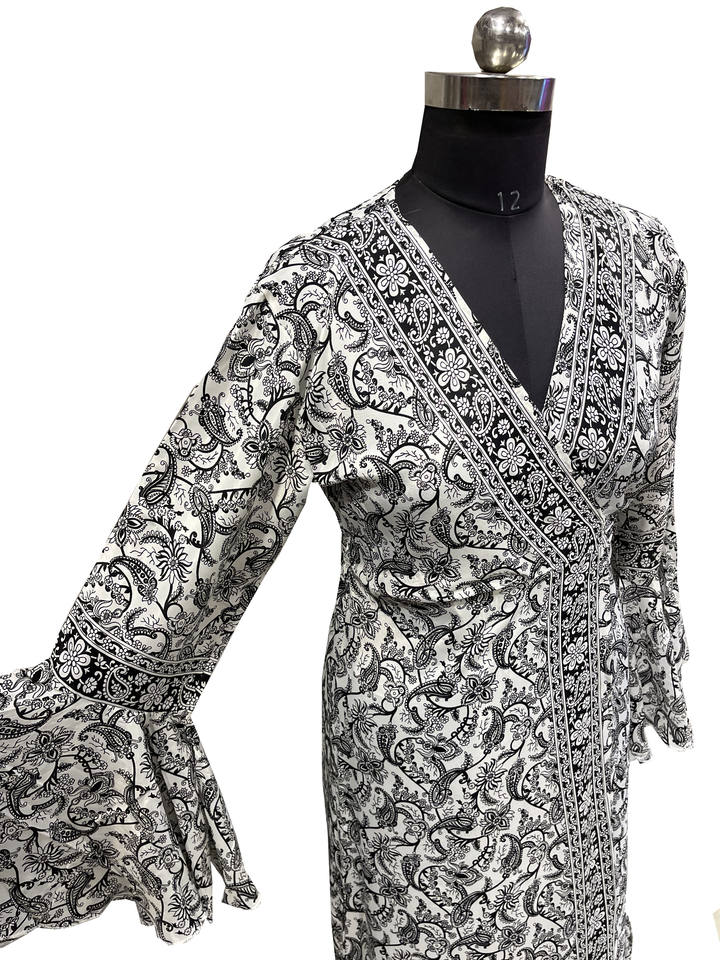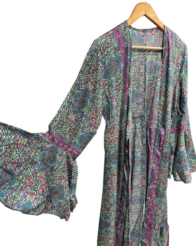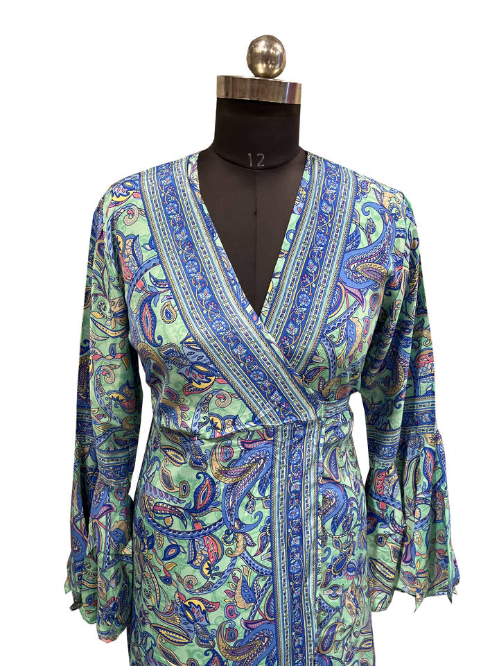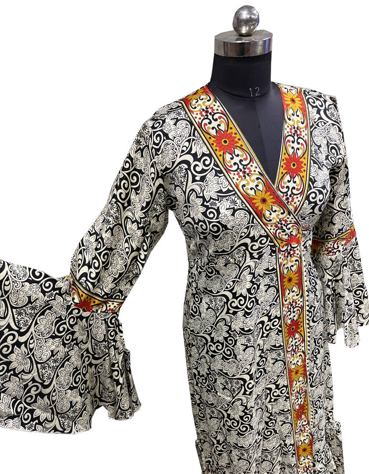 New Sari Silk Mix Fabric Print Summer Wear Long Dress for Women Wholesale Supply Boho Fashion Style Wrap Dress