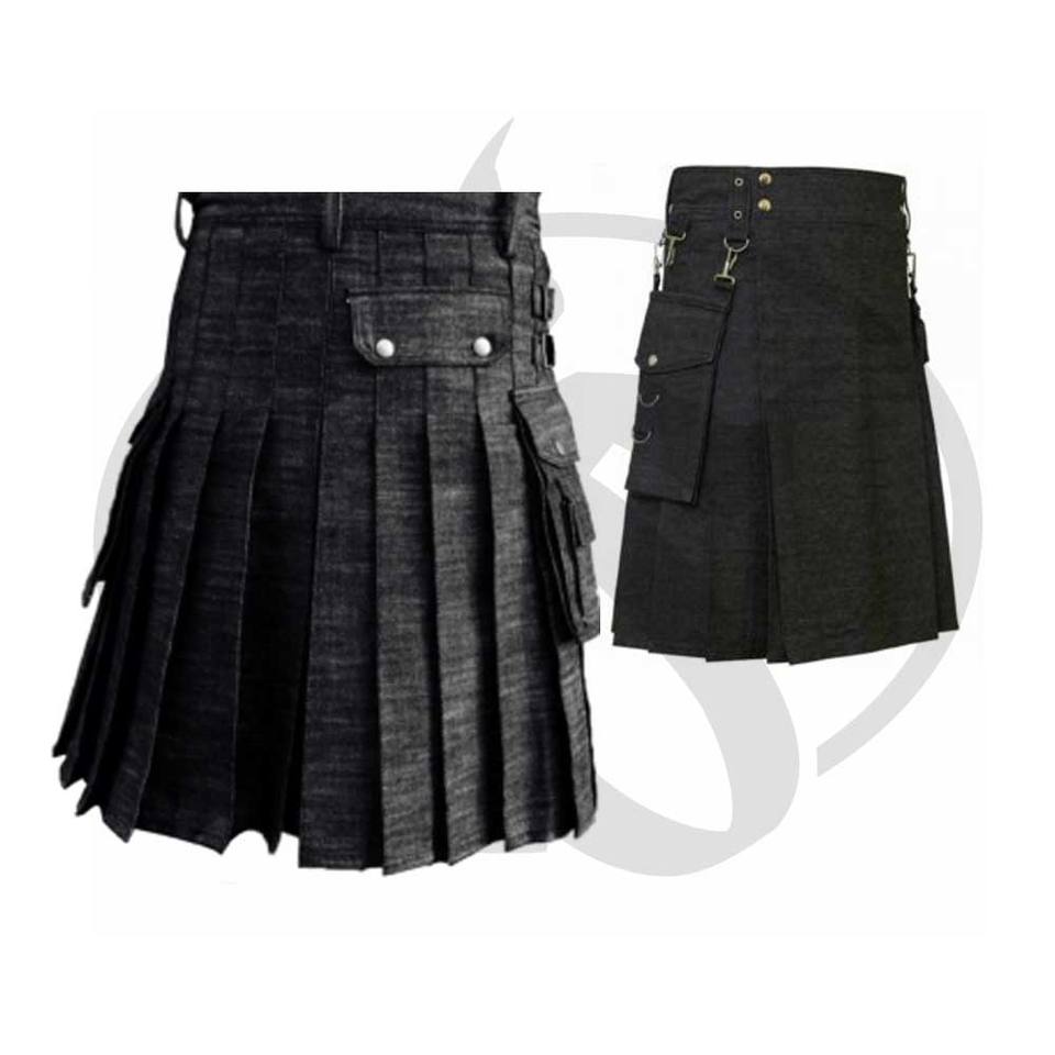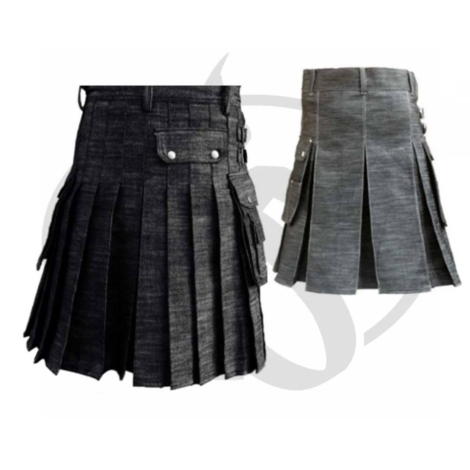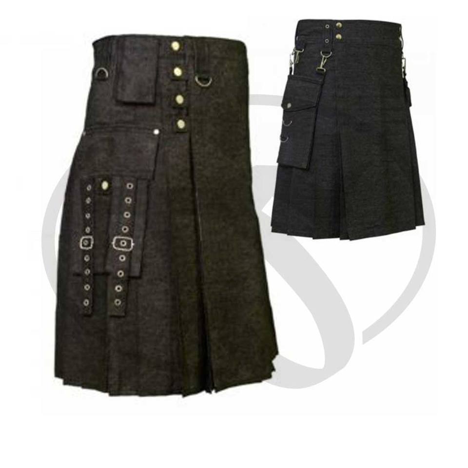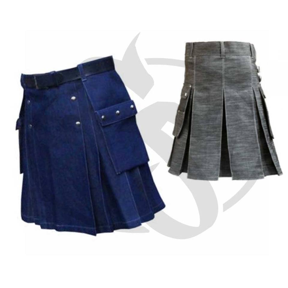 กระโปรงแฟชั่นชายลายสก็อต,กระโปรงผ้าเดนิมงานทำมือดีลักซ์ใหม่