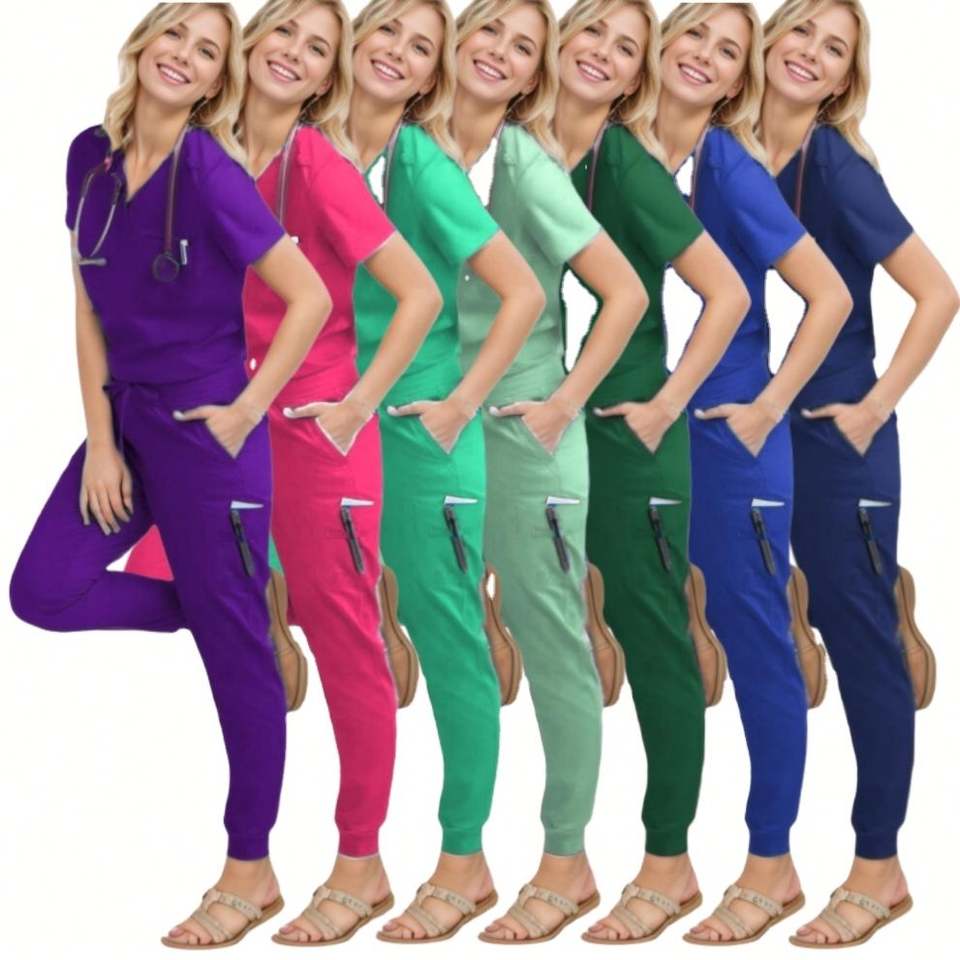 ชุดยูนิฟอร์มทางการแพทย์แบบใหม่ เสื้อสครับผ้าสเตรชและกางเกงมีกระเป๋า ผ้าเดนิม สำหรับพยาบาล แพทย์ ศัลยแพทย์ ชุดทำงานร้านเสริมสวย