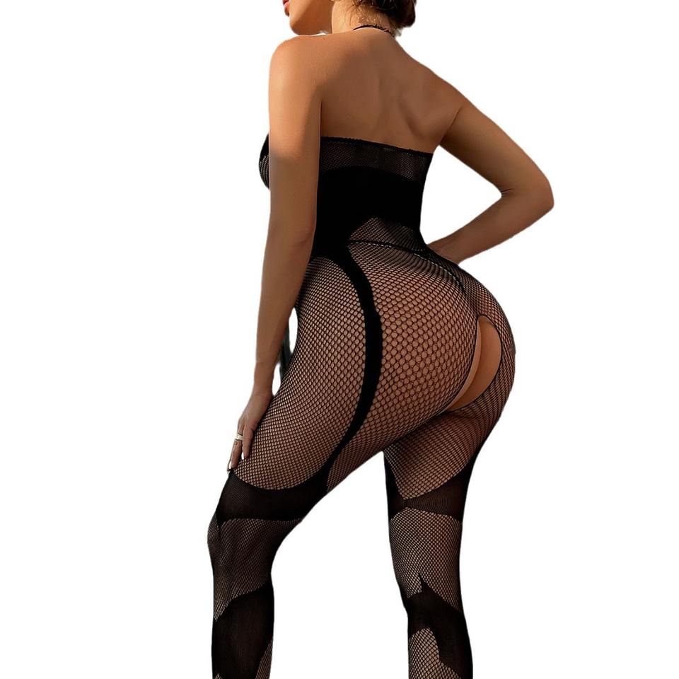 ชุดบอดี้สูทตาข่ายซีทรูประดับเพชรแบบใหม่ เป้าเปิด ชุดชั้นในผู้หญิง