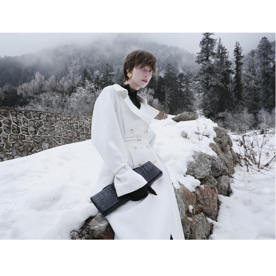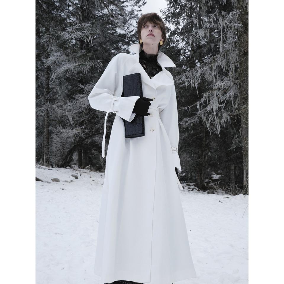 เสื้อโค้ทผู้หญิงสำหรับฤดูหนาวรุ่นใหม่ VELOURA แบบกระดุมสองแถว พร้อมเข็มขัดยาว ปิดด้วยกระดุมแบบติดกัน คอปกแบบพับได้