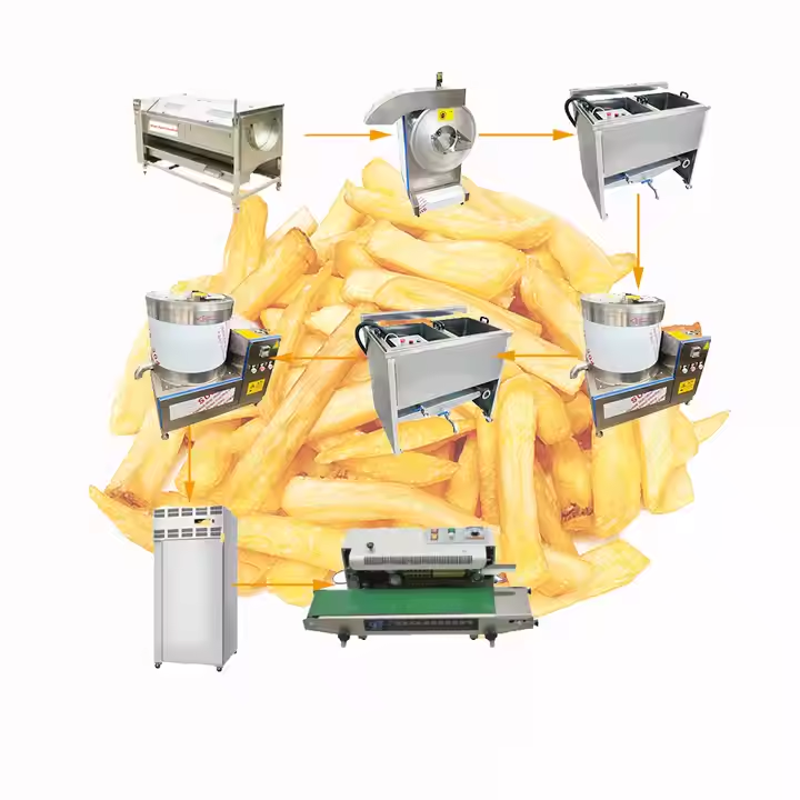 เครื่องผลิตมันฝรั่งทอดแบบกึ่งอัตโนมัติ ใหม่ ประหยัดพลังงาน ผลิตได้ 100 กิโลกรัม/ชั่วโมง ทำจากสแตนเลส สำหรับโรงงานแปรรูปมันฝรั่งสด