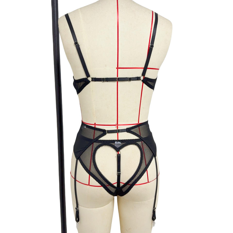 ชุดชั้นในบราบางเบาแบบซีทรู แต่งเลื่อมพู่ห้อย ปิดจุกนม พร้อมกางเกงใน ดีไซน์เซ็กซี่แบบเปิดคัพ ปักลายสวยงาม