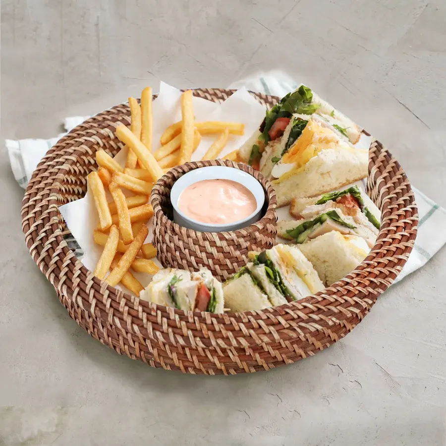 จานและจานชามทำจากหวาย,ถาดเสิร์ฟแบบจุ่มสำหรับกล่องเก็บอาหารสำหรับปาร์ตี้สำหรับใส่ขนมขบเคี้ยวผลไม้แห้ง