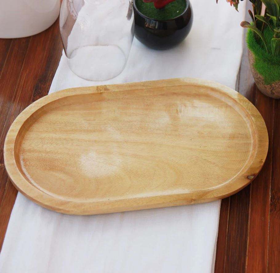 New Serving Tray Brown Wood Oval Shape for Home Decorative Hotel Restaurant Bar Kitchenware Table Decor Bulk Quantity Wholesale
