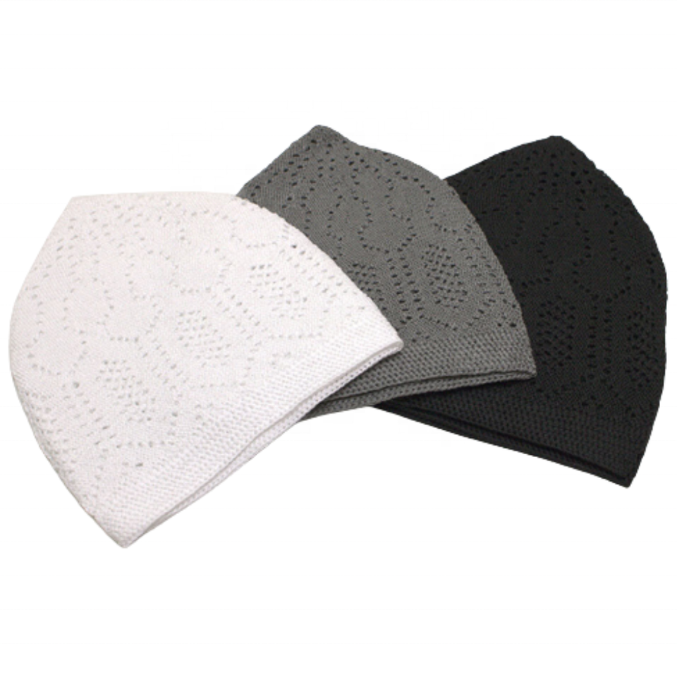 ชุดใหม่3ชิ้นหมวกมุสลิม koofiya ถักหมวก kufi taqiya หมวกแก๊ปลายหัวกะโหลกอิสลามหมวกผู้ชายหนึ่งขนาดเหมาะกับทุกคน