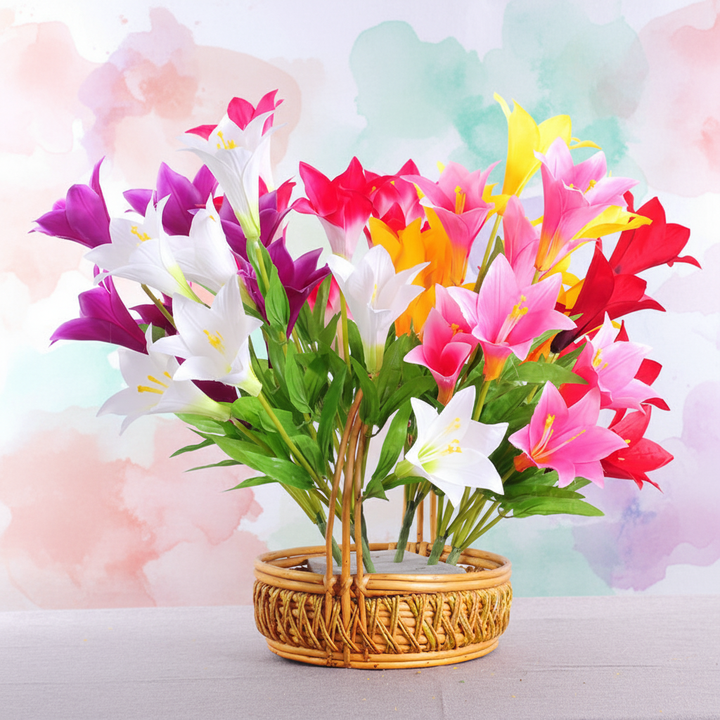 ช่อดอกไม้ประดิษฐ์ ซิลค์ รุ่น New Seven Lily สำหรับตกแต่งห้องนั่งเล่น ถ่ายภาพงานแต่งงาน และตกแต่งบ้าน