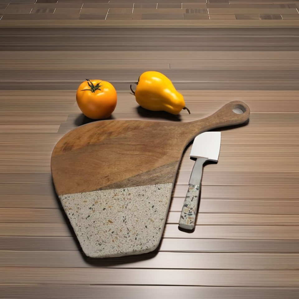 เขียงไม้มะม่วงลายเทอร์ราซโซ ดีไซน์ใหม่ หนา 2 ซม. รูปทรงสี่เหลี่ยมผืนผ้า สำหรับหั่นชีส วางเสิร์ฟ งานแฮนด์เมดสุดฮิต