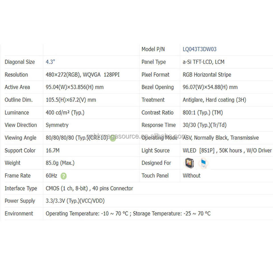 Model:LQ043T3DW03