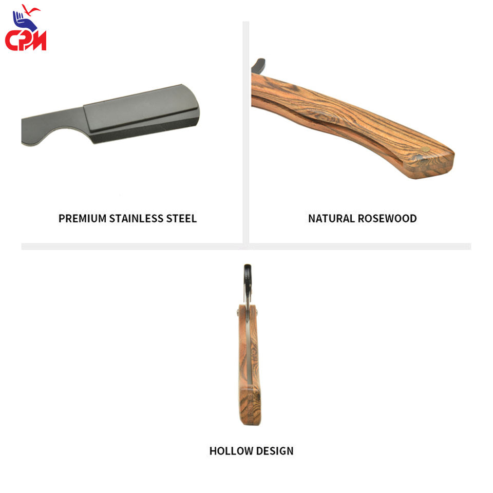 มีดโกนหนวดพับได้สำหรับช่างตัดผม,มีดโกนตรงทำจากสเตนเลสสตีลมีมือจับทำจากไม้