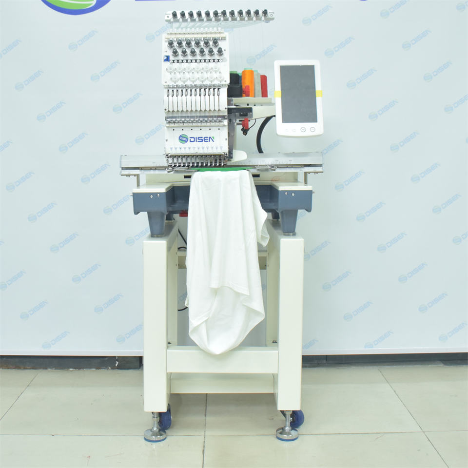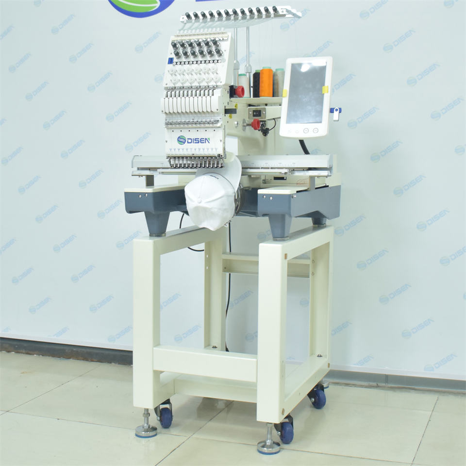 เครื่องปักคอมพิวเตอร์อุตสาหกรรมแบบหัวเดียว 1200 รอบต่อนาที 12/15 เข็ม ความแม่นยำสูง สำหรับปักหมวก โลโก้ เสื้อยืด หมวกแก๊ป