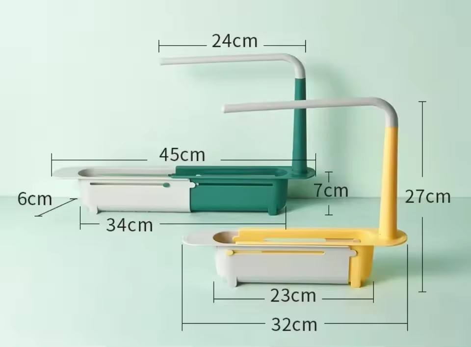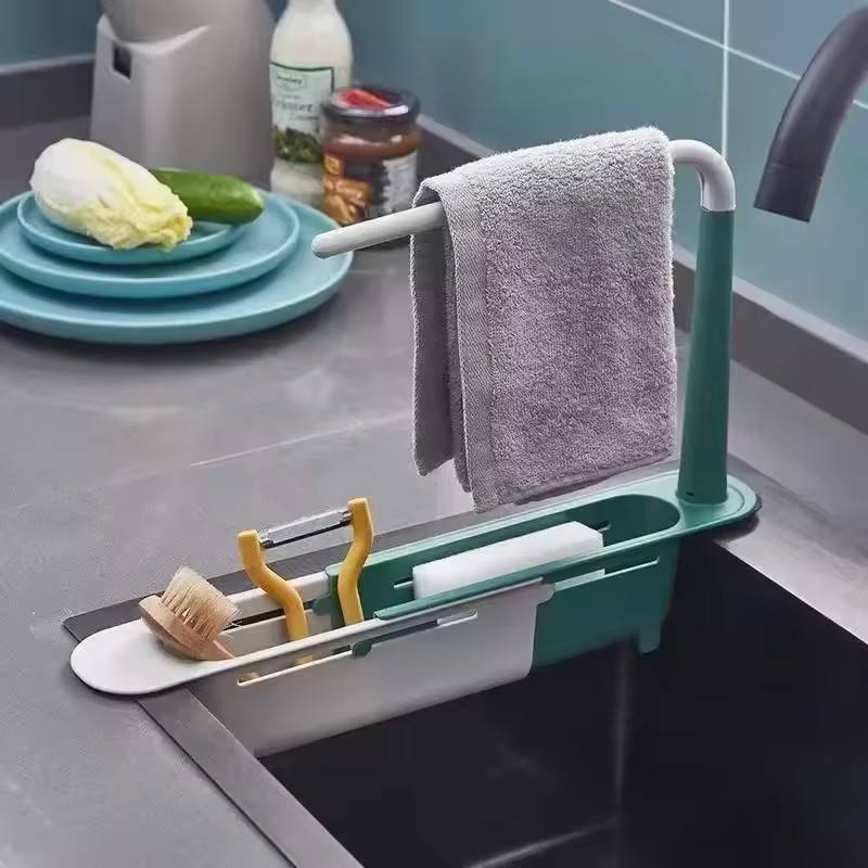 ตะแกรงวางของในอ่างล้างจานแบบยืดหดได้ อุปกรณ์จัดระเบียบอ่างล้างจาน ที่วางสบู่ ฟองน้ำ อุปกรณ์เสริมในครัว