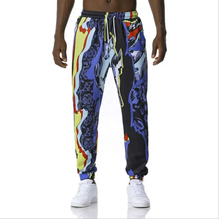 กางเกงสลิมฟิตสำหรับผู้ชายใหม่พิมพ์ลายซับลิเมตกางเกงวิ่งจ็อกเกอร์ยาวถึงข้อเท้ามีเชือกผูกเอวกางเกงพิมพ์ดิจิตอลกันลมสำหรับผู้ชาย