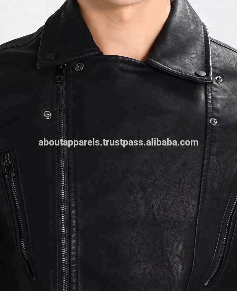 เสื้อแจ็กเก็ตหนังเทียมสำหรับผู้ชาย,เสื้อแจ็กเก็ตหนังแกะแท้เข้ารูปแบบเรียบๆสีดำสำหรับนักขี่จักรยานผู้ชายสำหรับฤดูหนาว