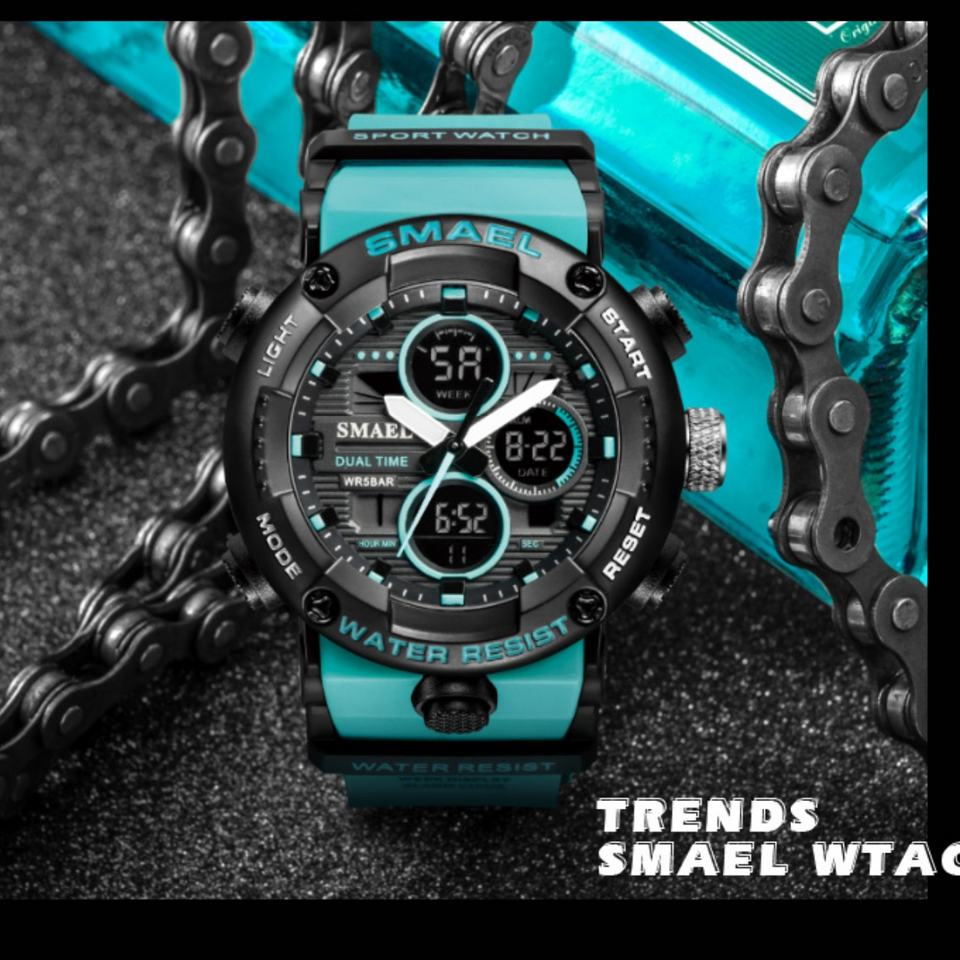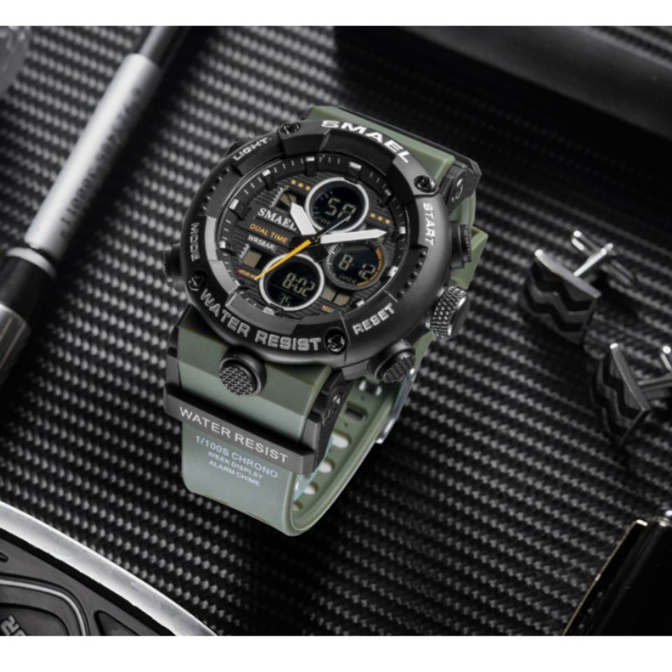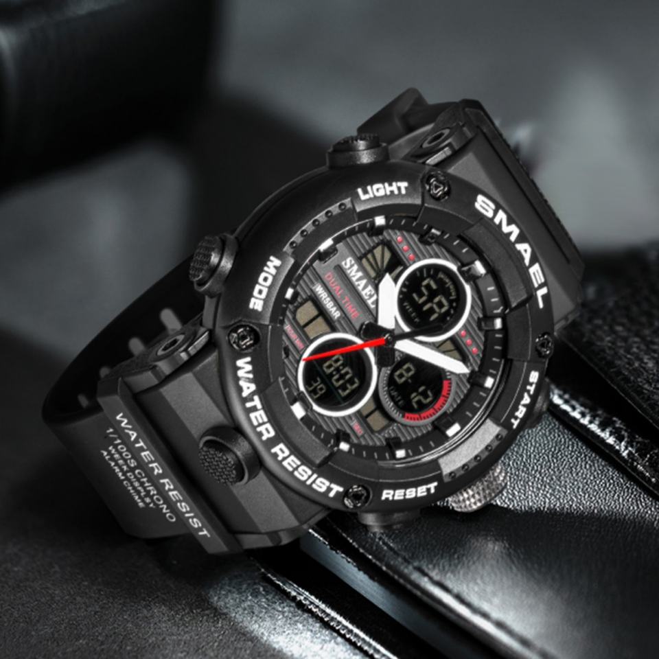 นาฬิกาข้อมือดิจิตอล Smael 8038 รุ่นใหม่สำหรับผู้ชาย ขนาดใหญ่ ระบบอิเล็กทรอนิกส์ กันน้ำ 50 บาร์ เรืองแสง จับเวลา โครโนกราฟ นาฬิกาปลุก สำหรับเล่นกีฬา