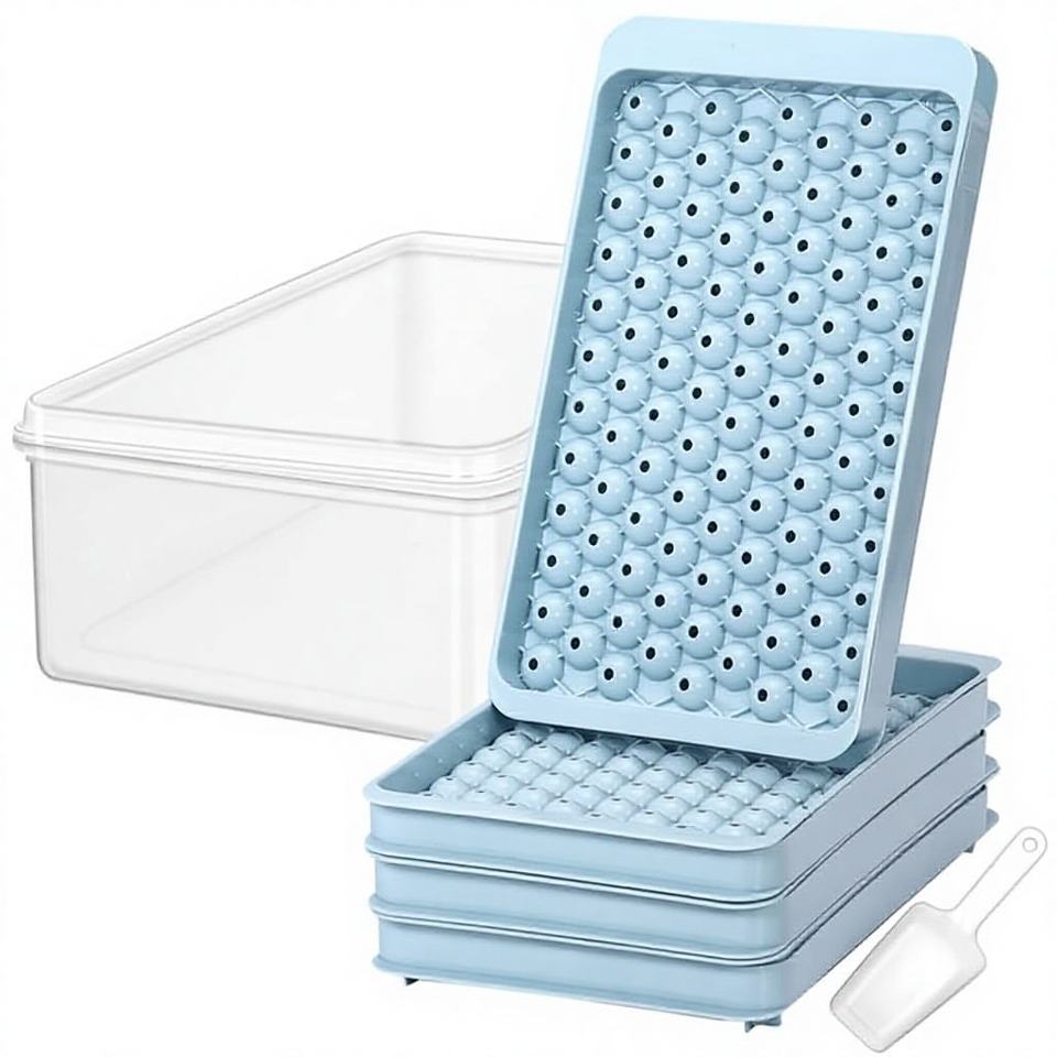 ถาดทำน้ำแข็งพลาสติกทรงกลมขนาดเล็ก 104 ช่อง พร้อมฝาปิดและกล่อง ง่ายต่อการแกะออกและไม่ติด