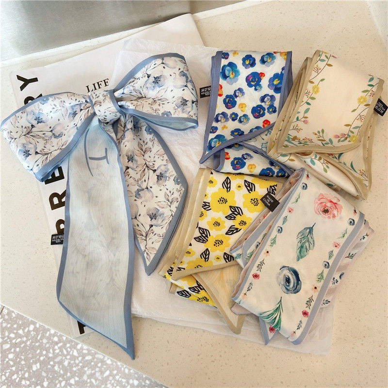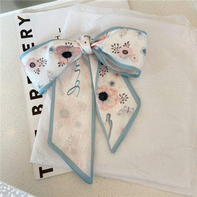 ผ้าพันคอสำหรับผู้หญิงกระเป๋าคาดผมลายทางยาวสองด้านสุดหรูใหม่