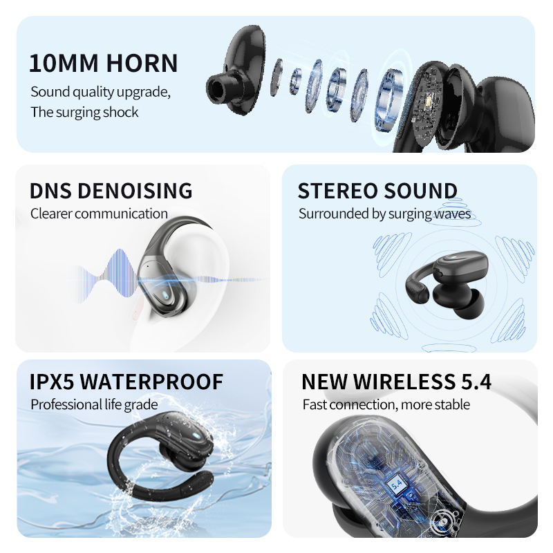 หูฟังไร้สายแบบสปอร์ตดิจิตอลอัจฉริยะรุ่นใหม่ พร้อมที่เกี่ยวหู ระดับไฮเอนด์ สำหรับหูฟัง 5.4 กันน้ำระดับ IPX5