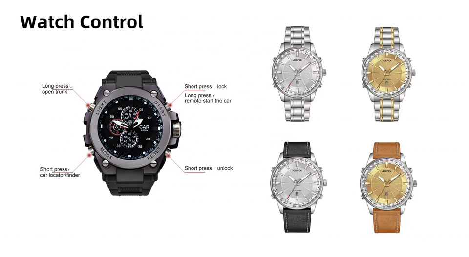 รีโมทสตาร์ทรถยนต์แบบนาฬิกาอัจฉริยะ พร้อมระบบกันขโมย ปุ่มกดสตาร์ท พร้อมกุญแจนาฬิกา